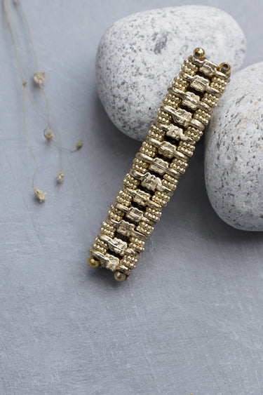 All products at House of Tuhina are handmade. From the making of the raw material to the weaving of jewelry it is all done by hand. Various techniques have been developed in house to make different designs.