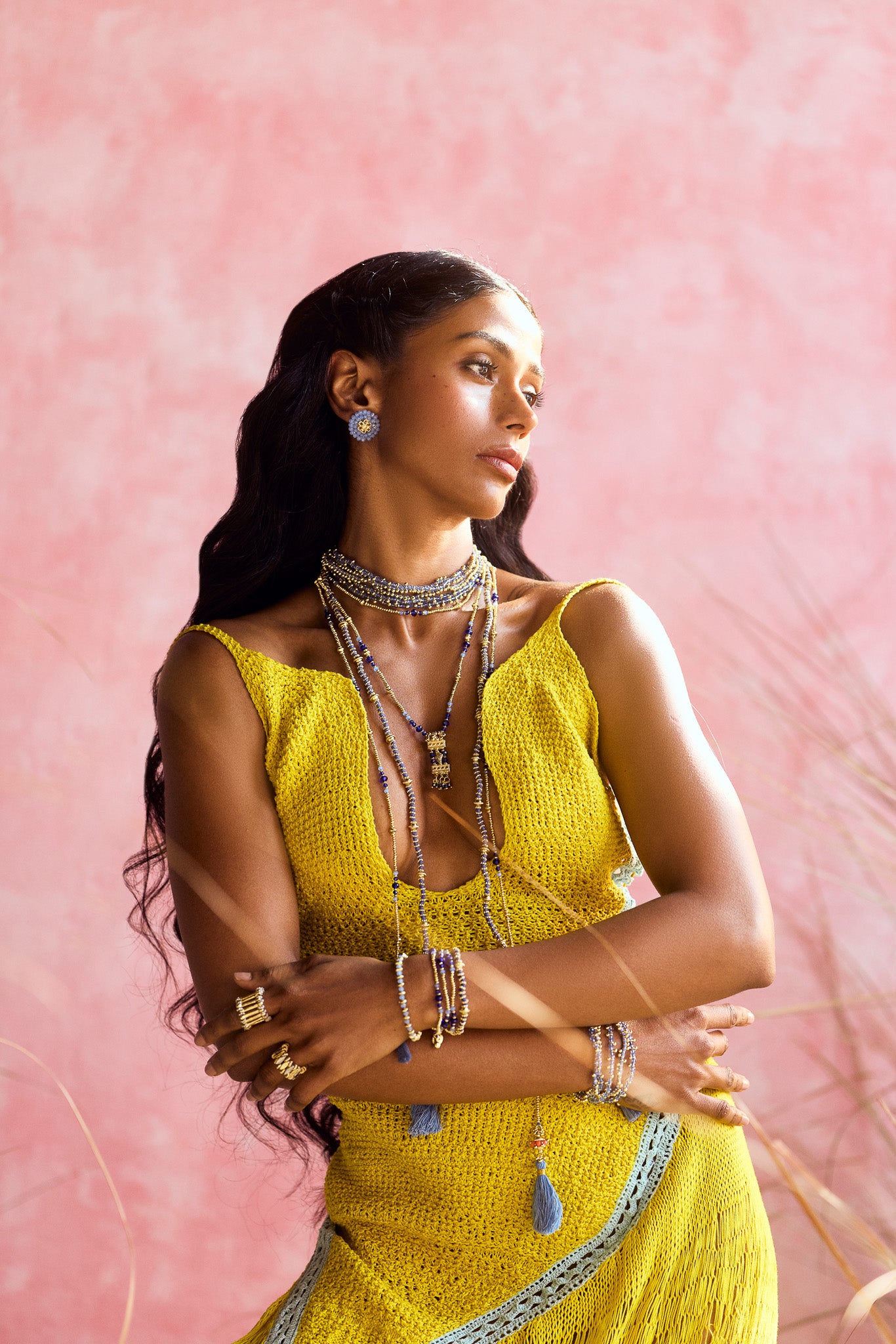All products at House of Tuhina are handmade. From the making of the raw material to the weaving of jewelry it is all done by hand. Various techniques have been developed in house to make different designs.